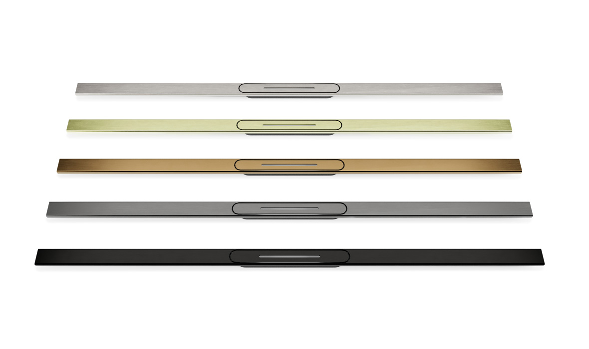 1800 x 900 mm - Rinne in fünf aktuellen Designfarben: Edelstahl gebürstet, Light Gold, Copper, Gunmetal Black, Metal Black